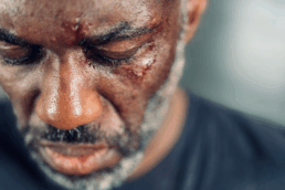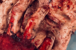 Mise en situation : maquillage dont prothèse avec sang devant la caméra