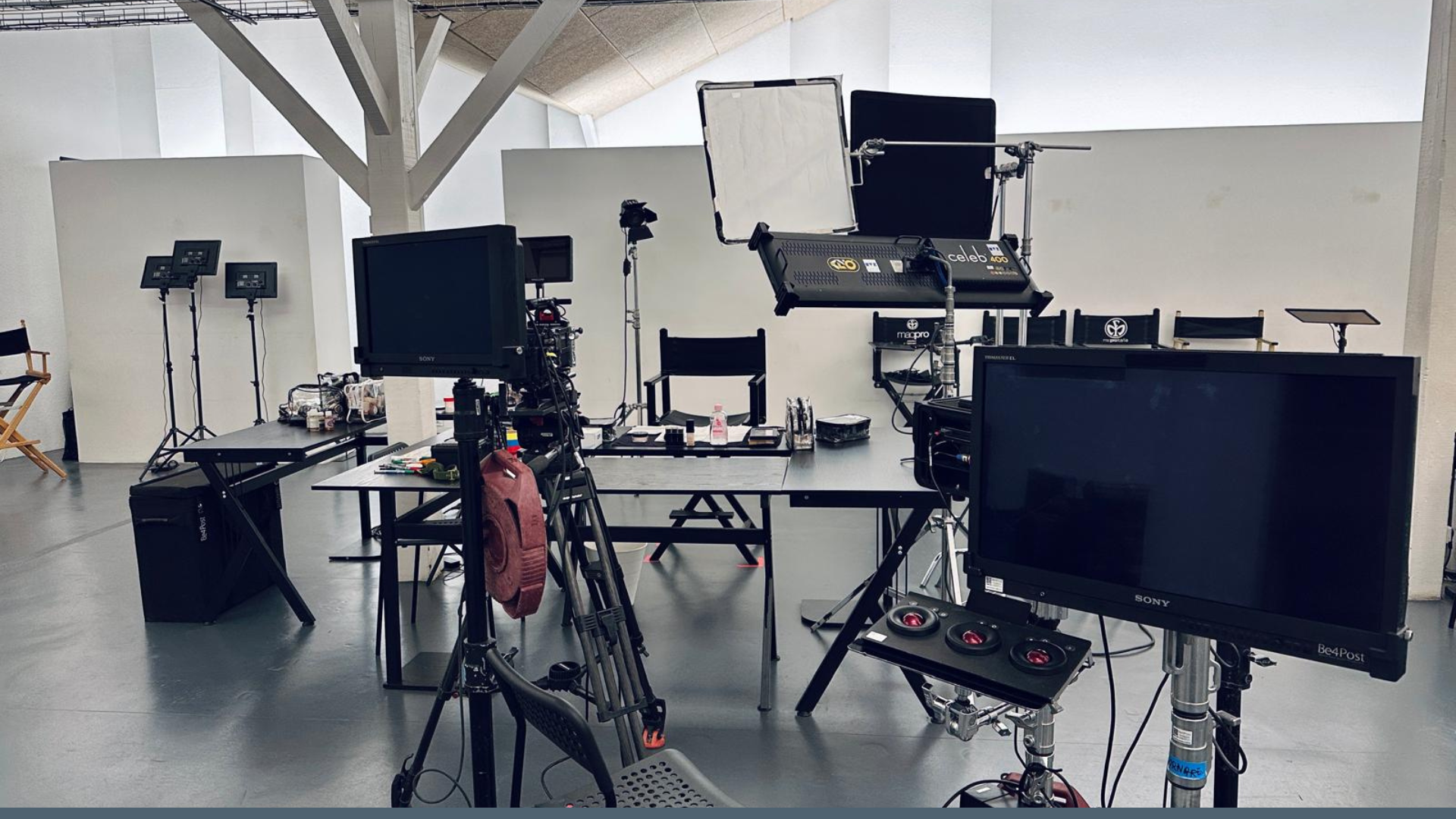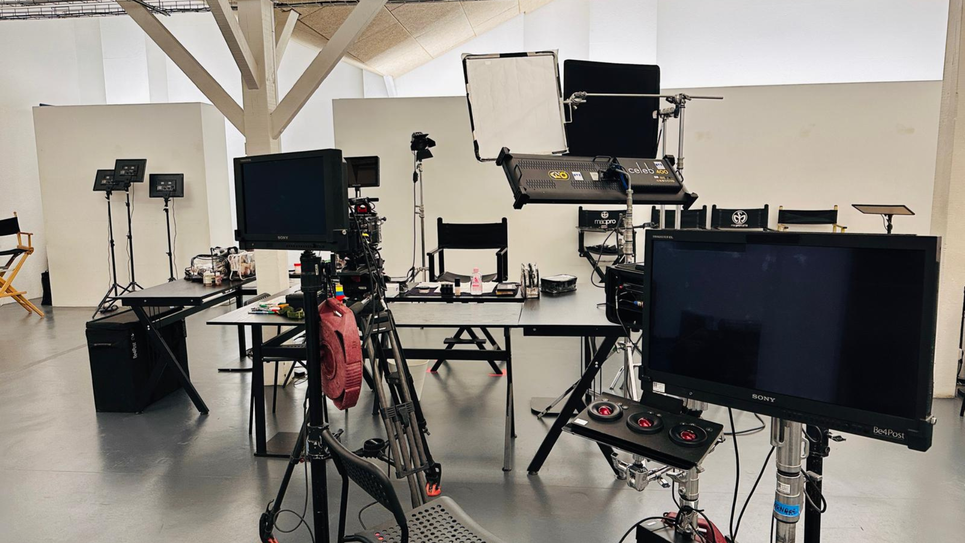 2 moniteurs post prod, tablette d’étalonnage,